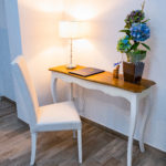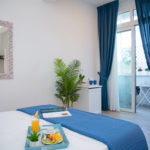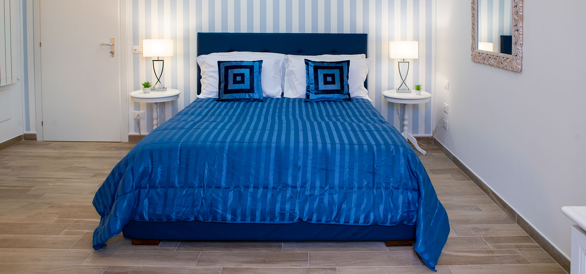 Camera comoda, accogliente, spaziosa e arredata con stile e raffinatezza di circa 22 mq, è dotata di letto matrimoniale, con eventuale culla, tv led da 32″, bagno munito di doccia 80×80, lavabo, wc e bidet, asciugamani, asciugacapelli e set cortesia. La stanza dispone inoltre di un ampio balcone, nel quale troverete un tavolino con due sedie per il vostro relax anche all’aria aperta.