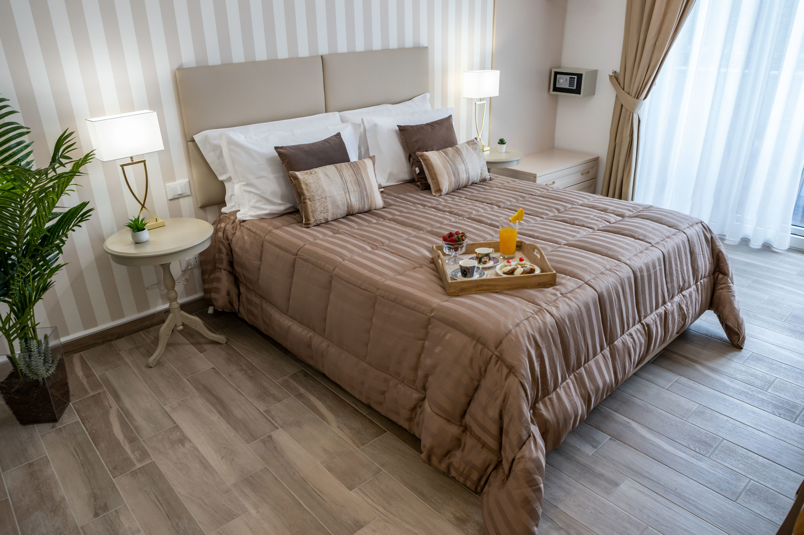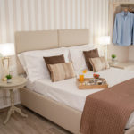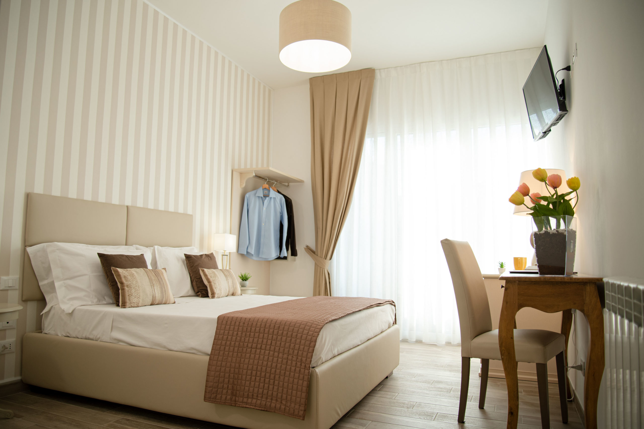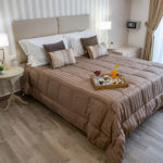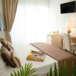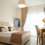 Camera spaziosa, accogliente e luminosa arredata con stile ed eleganza di 21 mq, è dotata di letto matrimoniale,  eventuale  terzo letto per ragazzi/culla, tv led da 32″, bagno munito di doccia 120×70, lavabo, wc e bidet, asciugamani, asciugacapelli, kit bollitore e set  cortesia.  La stanza ha un balcone con un tavolino e due sedie su via F. Crispi, da cui  è possibile ammirare l’affascinante Piazza XIII Vittime.